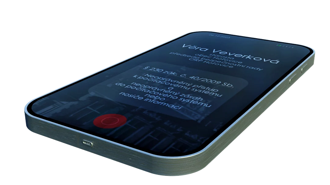 Podnět k provedení bezodkladných úkonů ve věci neoprávněného přístupu k počítačovému systému a neoprávněného zásahu do počítačového systému a nosiče informací – telefonu starosty obce Hořovice Věry Veverkové, mobil 733349506, učiněného dne 6.12.2023 ze strany Karla Pelikána, radního a zastupitele obce Hořovice, působícího ve výkonu zast. mandátu do r. 2022, tzn. neoprávněného přístupu a zásahu do počítačového systému nosiče informací ve věcech veřejných i neveřejných elektronických dat systému působnosti a výkonu Města Hořovice a Městského úřadu Hořovice prostřednictvím starosty Věry Veverkové.